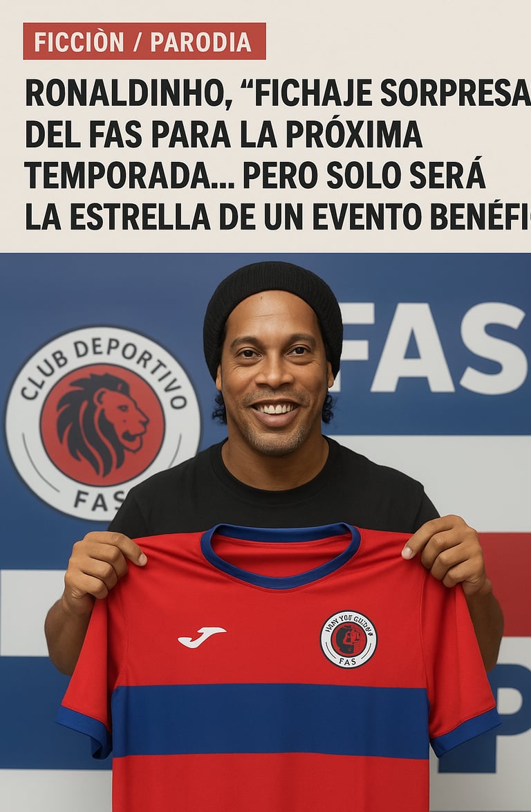 San Miguel, El Salvador — En un anuncio transmitido esta tarde que tomó a muchos por sorpresa, el Club Deportivo FAS presentó lo que llamó un “fichaje histórico”: Ronaldinho Gaúcho, la leyenda brasileña, sería parte del plantel para la próxima temporada. La noticia, difundida con formato de rueda de prensa y fotografías estilo anuncio oficial, generó una oleada inmediata de comentarios y memes entre la afición tigrilla.